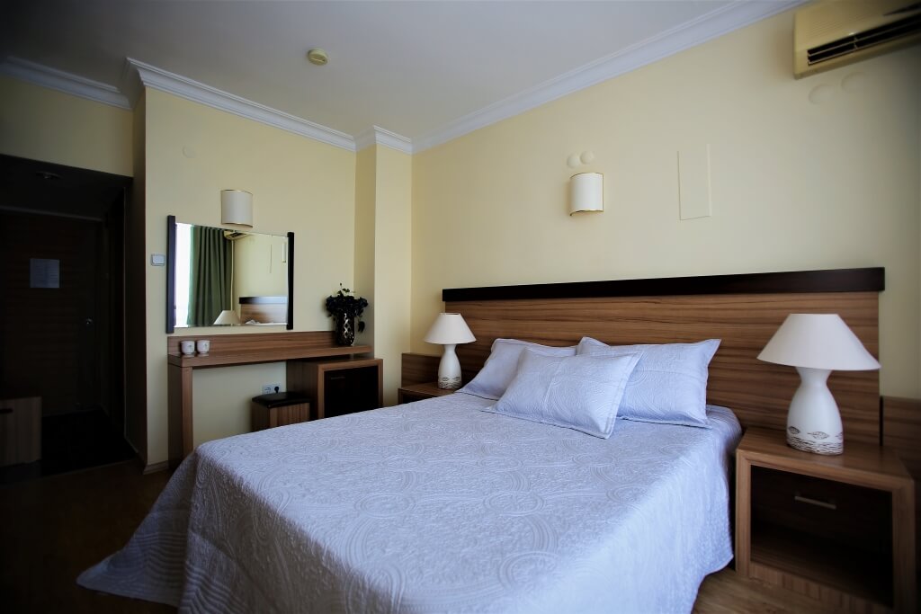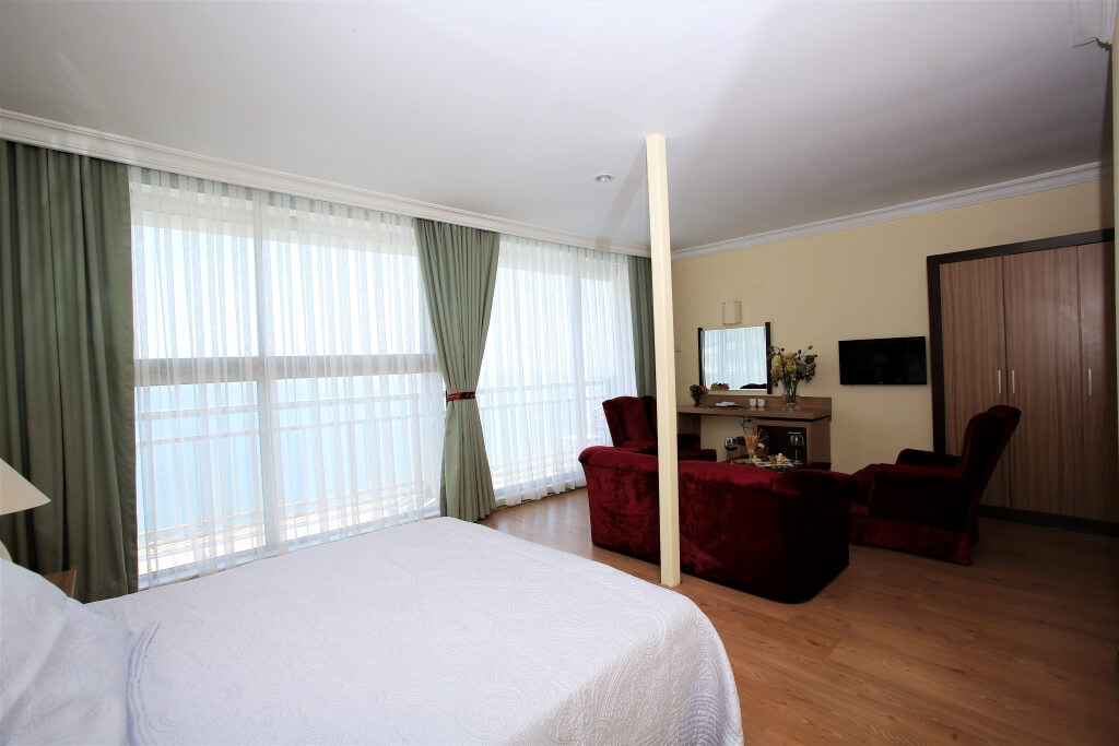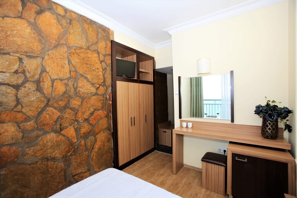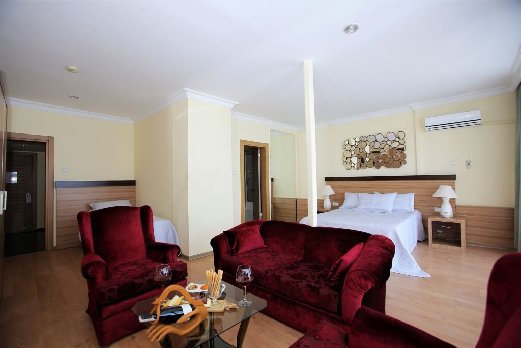 Tüm Odalar deniz manzaralı, Direkt telefon, Zemin laminet parke, Split Klima, Balkon, Minibar, Komidin, WC, Fön Makinesi, Safe Box, Valiz Sehpası, TV (uydu) bulunmaktadır.
