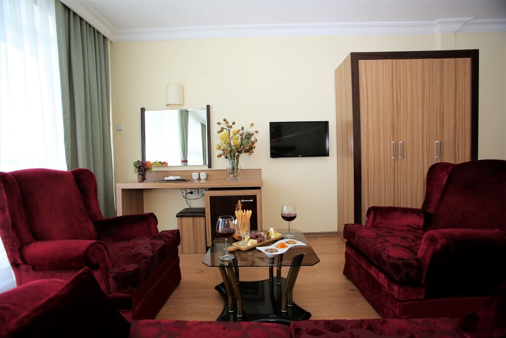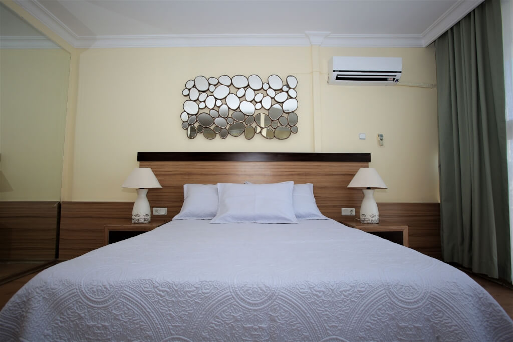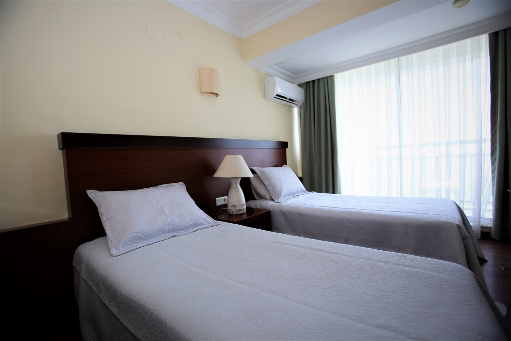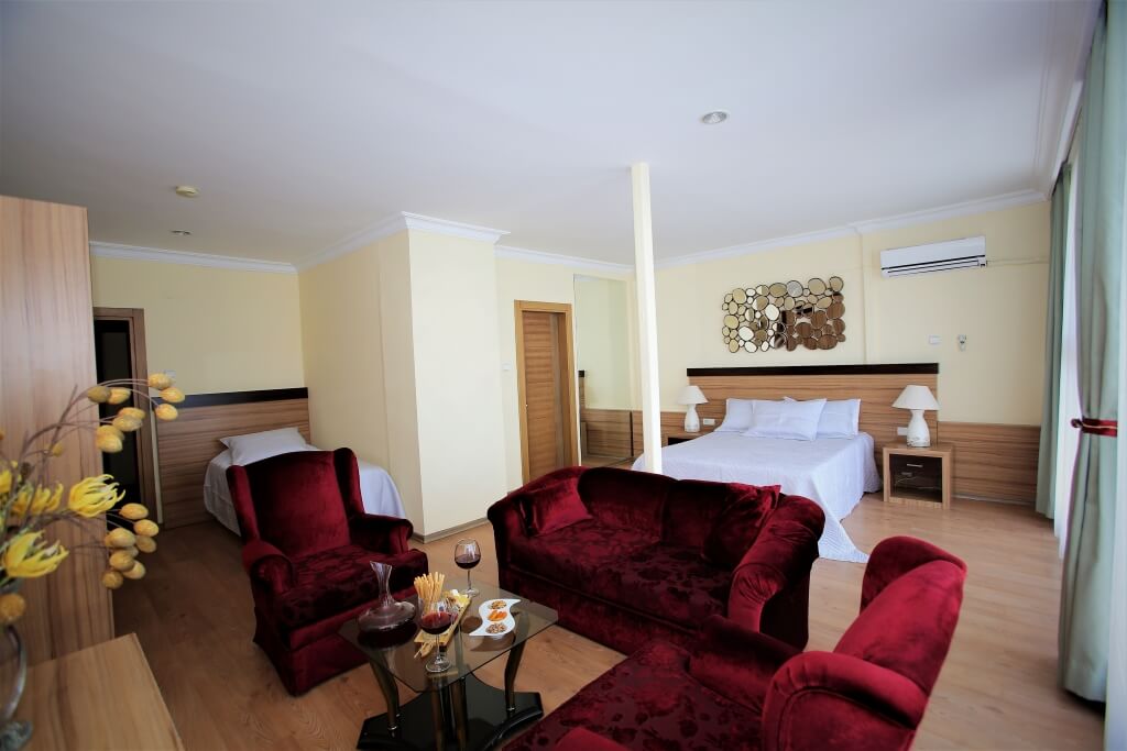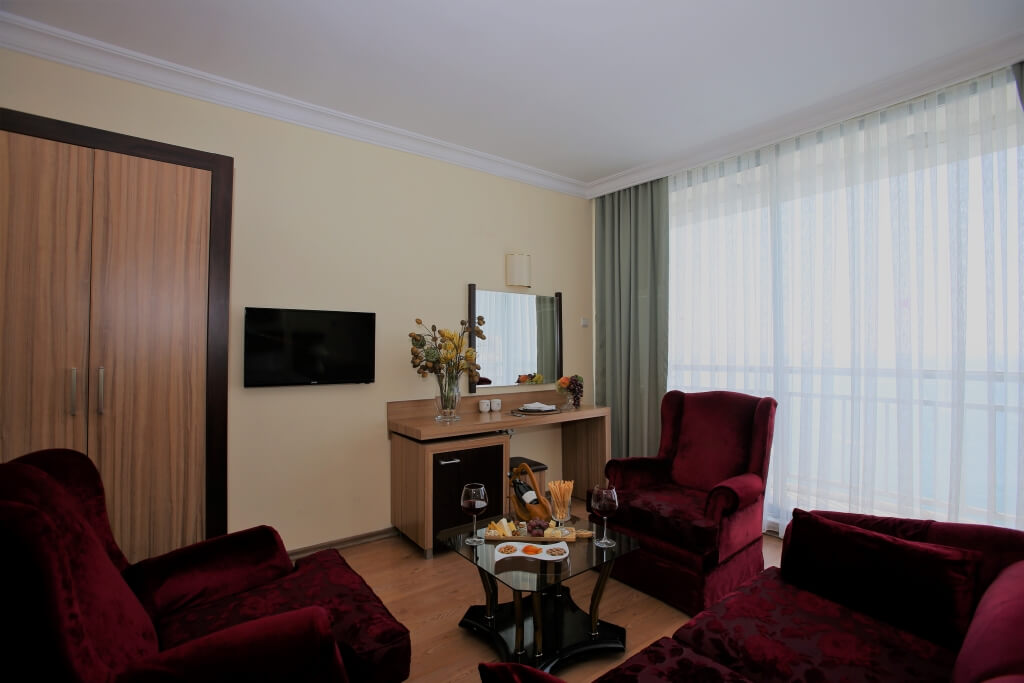 Tüm Odalar deniz manzaralı, Direkt telefon, Zemin laminet parke, Split Klima, Balkon, Minibar, Komidin, WC, Fön Makinesi, Safe Box, Valiz Sehpası, TV (uydu) bulunmaktadır.